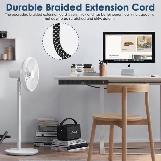 Safety and DurabilityCrafted from aluminum alloy metal material, this 8 outlet power strip ensures fire resistance, impact resistance, and rust prevention. The high-quality braided power cord adds extra wear resistance. The robust construction protects against dents and scratches.