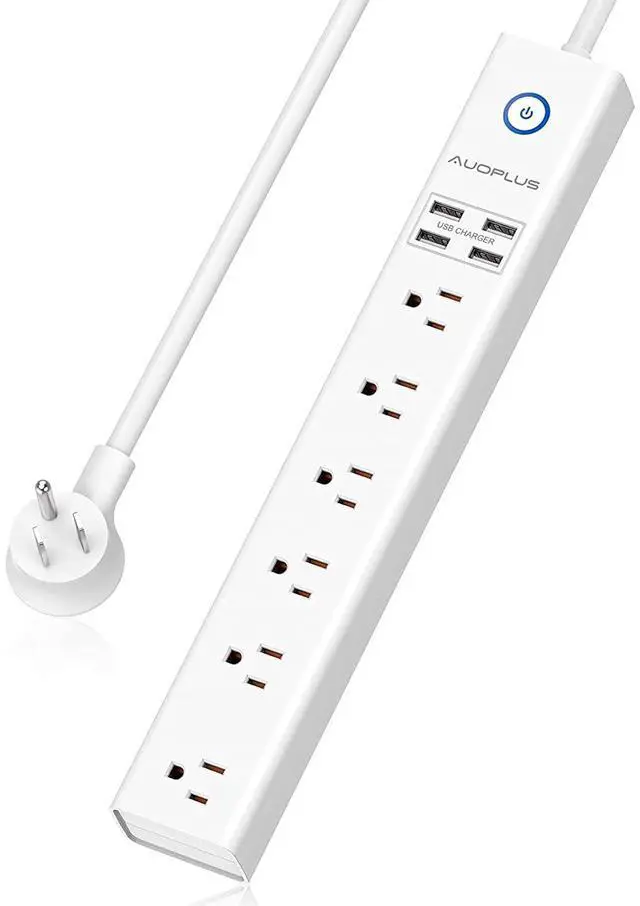 USB Power Strip with Smart IC: The surge protector power strip includes USB ports that provide a 5V/2.4A maximum charging current per port (sharing 3.4A/17W). With built-in smart IC technology, it delivers optimal charging currents to your devices according to their needs, making it perfect for simultaneously charging cellphones, laptops, tablets, and cameras without needing multiple converters. The three-prong power strip flat plug occupies minimal space, helping to keep your desktop organized.