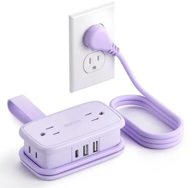 Reliable Safety Travel AccessoriesThis compact power strip is made of fire-resistant materials and is designed to be durable. It includes 4 anti-slip rubber bottoms, ensuring stability on surfaces like nightstands without slipping off. This power strip is perfect for use at home, in the office, or in college dorm rooms.