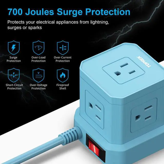 [8-Point Safety System] - Features overheating protection, overload protection, 700 joule surge protection, over-current protection, over-voltage protection, short-circuit protection, and much more to deliver safe power, keeping you and your connected devices safe. Made of fire-resistant PC shell and 100% pure copper wire, the power strip is more durable and safe.