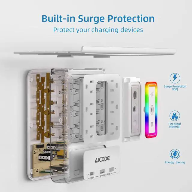MULTI PROTECTION POWER OUTLET: This surge wall protector (900J) is certified, and this wall charger is made of high-grade flame-retardant and high-temperature resistant PC material, good ductility, fatigue resistance, and safety, protecting electronics from overload, over-current, over-heat, lightning strikes, and fluctuations, built-in circuit automatically detects and protects your devices.