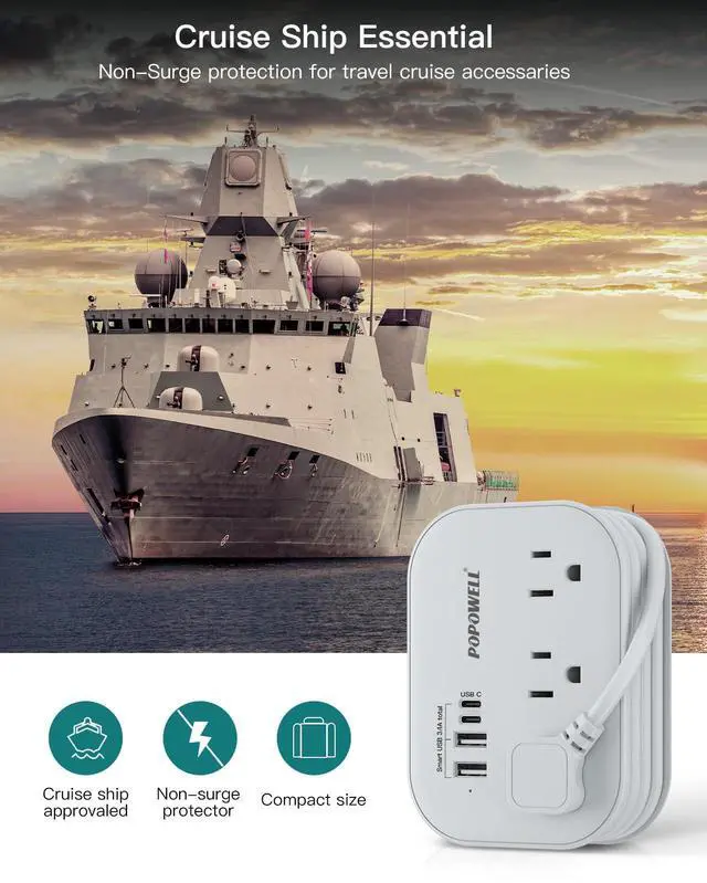 Cruise Ship Essentials & Travel Must Have - This portable power strip comes without surge protection, making it a perfect accessory for cruise cabins. Handy and lightweight, it provides extra outlets and chargers, suitable for travele