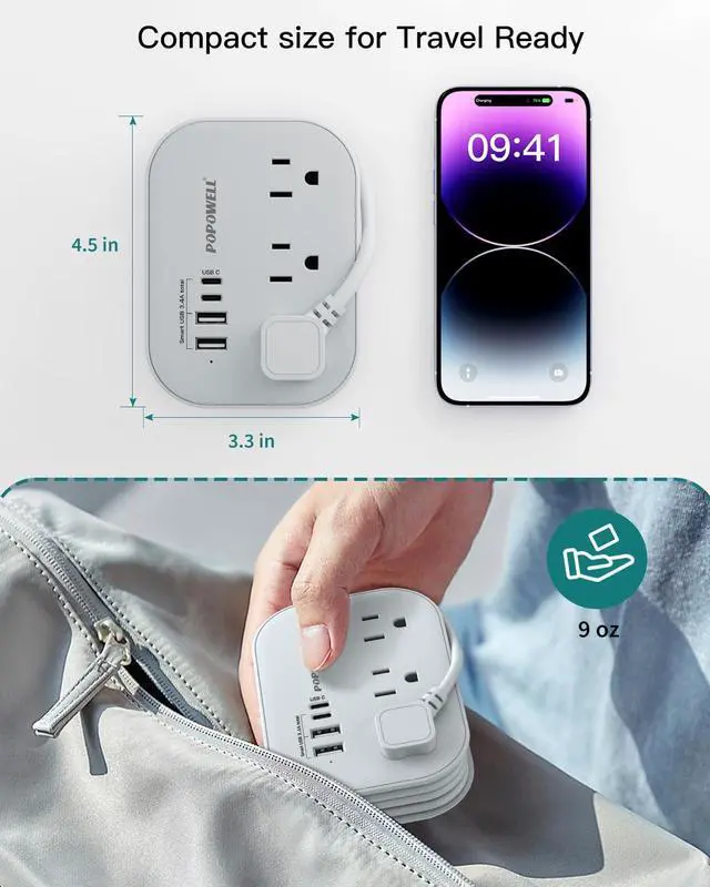 Compact Size for Travel - The unique slot design allows the cord and plug to be tucked in easily. The notch plug is easy to grip and pull out of the wall socket. With a compact size of 4.5 x 3.3 x 0.1 inches and a lightweight design, it fits perfectly into luggage, bags, or briefcases, making it an essential travel companion for business, school, or trips.