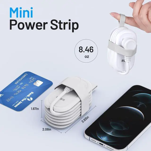 MINI Portable Power Strip Power Rating 1250W MAX-10A, 110V-250V~. This small power strip is smaller than a cellphone and can fit comfortably in your palm or pocket. The portable power strip is the perfect solution for all your charging needs!