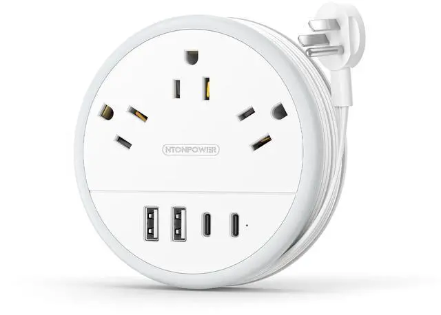 WrapRound Travel Power StripDesigned for portability, the travel power strip has a compact size of 4 x 4 x 0.04 inches, featuring a 4ft flat extension cord that can be neatly wrapped around it, making it easy to carry in bags or luggage without taking up extra space.