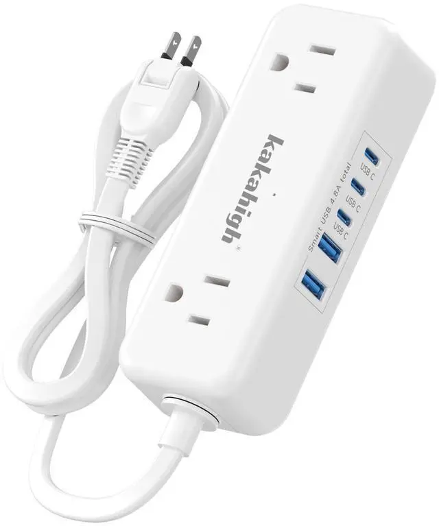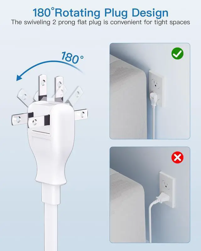 Small Power Adapter At only 8 oz and 4.4 x 1.7 x 0.1 inches in mini size, the 5-foot short extension cord keeps the power strip out of sight while ensuring it can reach your devices. The 2 prong power strip with a rotating plug easily fits in tight spaces like behind a couch, dresser, wardrobe, bookshelves, or other furniture that is close to the wall, not allowing you to use the standard plug.