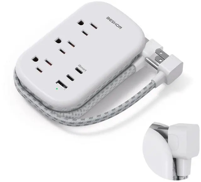 Compact for TravelFeaturing a 3.2ft retractable power cord for easy storage and a compact size of 5.5 x 3.4 x 0.04 inches, this lightweight design fits perfectly into luggage and bags. The 3 additional USB ports also eliminate the need for bulky adapters.