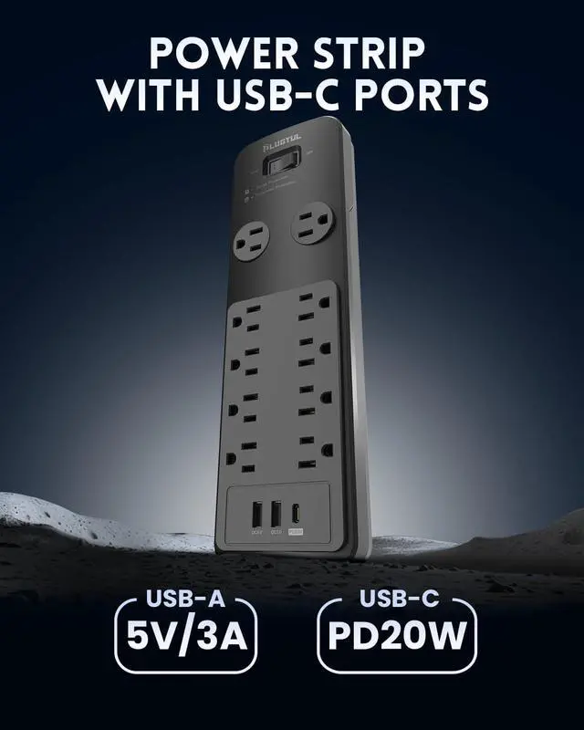 13-in-1 Power Hub Equipped with 10 AC outlets, 1 USB-C port, and 2 USB-A ports, this power strip provides all the connectivity you need to charge and power your appliances and mobile devices with ease.