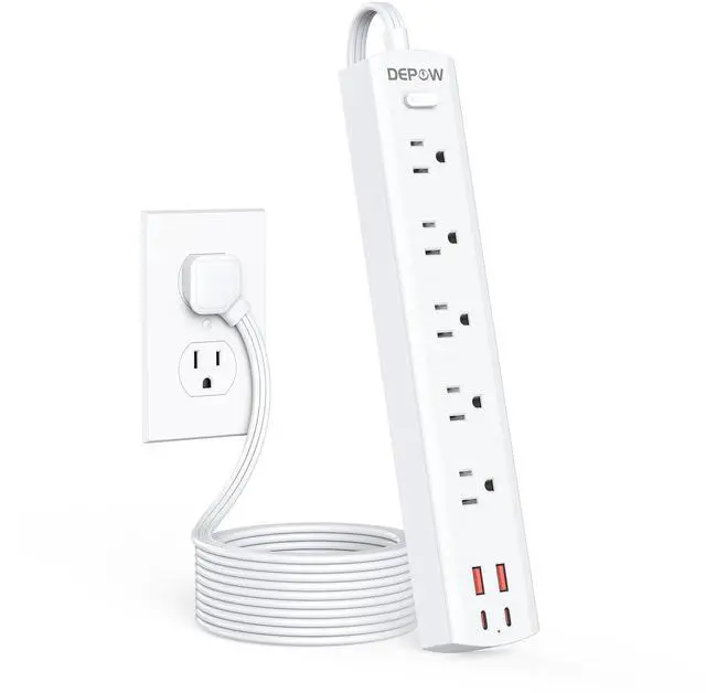 Expand 1 Outlet to 9 Devices - Power up 5 grounded AC outlets (1625W/13A) + 4 USB ports (2 USB-C) simultaneouslyideal for home offices, workshops, or dorm rooms. Say goodbye to outlet shortages with this space-saving surge protector power strip.