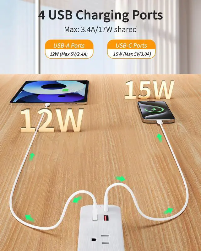 Eliminated Your Adapters - Designed with 2 mounting holes, this slim power bar can be mounted to the wall anywhere you choose. Each port delivers optimized charging to smartphones, game consoles, and more (Max 3.4A/17W Shared).