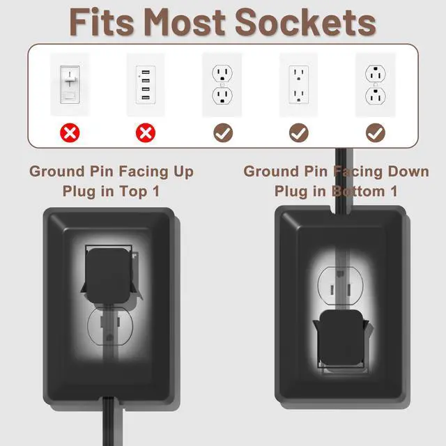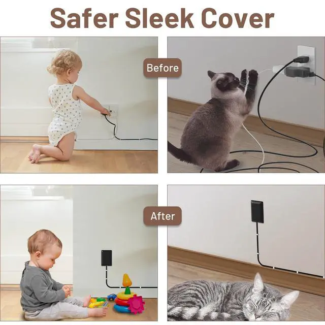 Safety Protection Cover: Sleek ultra-thin cover perfectly covers the electrical outlet, effectively protects curious children and pets; Included cord concealment kit secures extension cords to the wall, avoiding the risk of exposed outlets or tangled cords.
