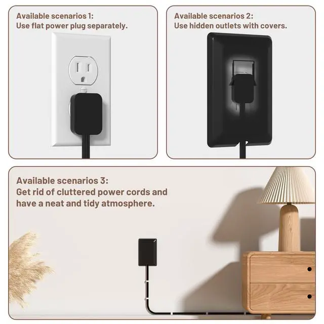 Easy Installation: Ultra-thin outlet cover fits most duplex outlets, no need for specialized tools, just slide the flat plug into the cover and mount it on the wall, turn on the power and ready to use.