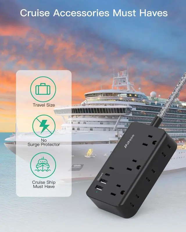Cruise Accessories Must Haves - This compact cruise power strip has no surge protection, meeting cruise lines' requirements. It's lightweight and easy to carry, making it ideal for travel.