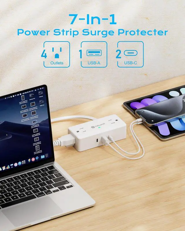 7 IN 1 power stripWith 3 AC outlets, 2 USB-C ports, and 1 USB-A port, this compact power strip is capable of efficiently powering all your desk devices.