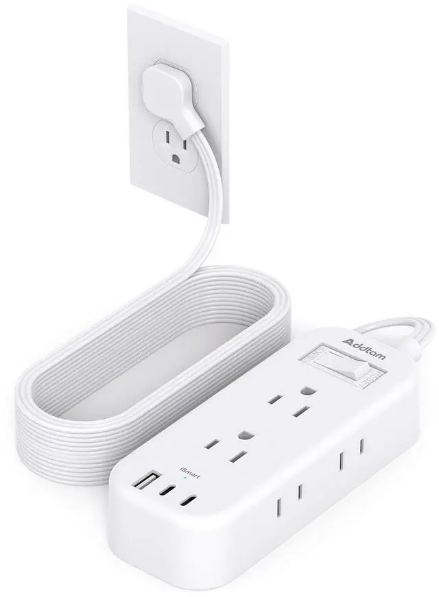 9 IN 1 Extension Cord with Multiple Outlets This flat power strip 15ft can turn 1 socket into 6 AC outlets (1875A/15A Max) and 3 USB ports, charging 9 devices simultaneously without blocking, keeping your desktop organized. You can use it in any indoor places such as home, office, and dorm room. With built-in Smart IC technology, the multi-plug extension cord with USB ports can auto-detect and deliver appropriate current to your devices like phones, tablets, or lamps.