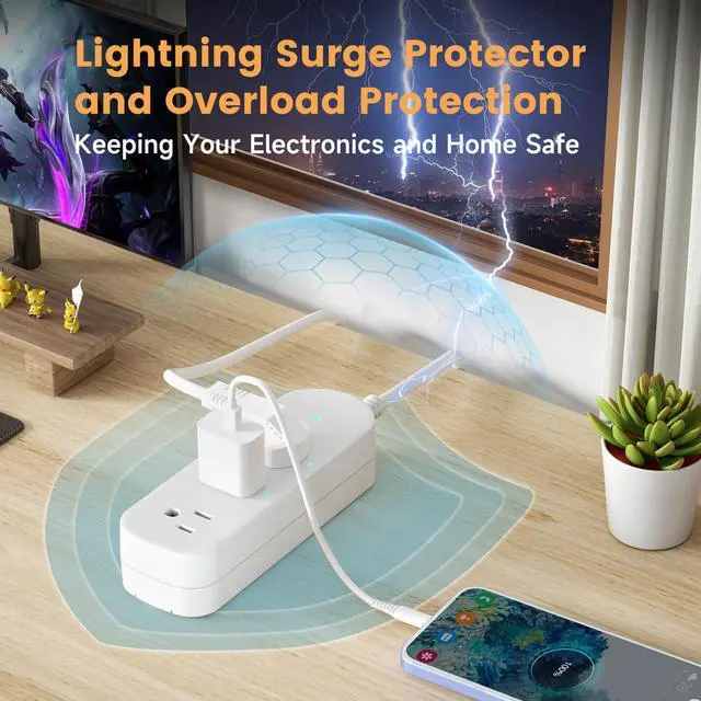 Versatile and User-FriendlyThe 45° plug design fits neatly into duplex wall outlets without obstructing adjacent sockets, and comes with a 3-foot extension cord for flexible placement. It fea