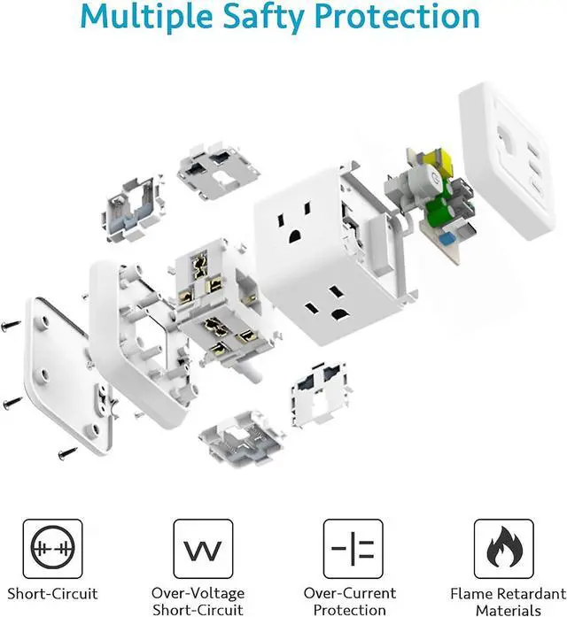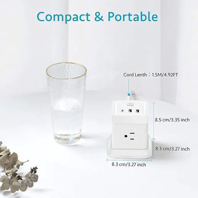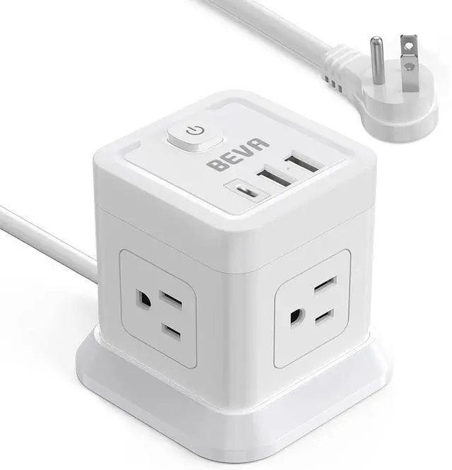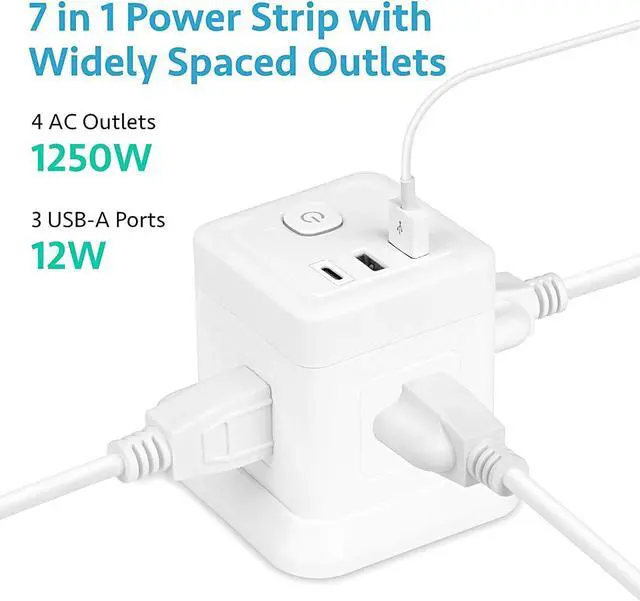 7-IN-1 Cube Power StripThe USB tower is equipped with 4 AC outlets and 3 USB charging ports in different directions to make full use of USB outlets. It provides power for up to 7 devices at the same time, and all side outlets are designed for large adapters to charge without blocking each other, saving your space and keeping your desktop organized. You can charge your phone, lamp, laptop, and other devices together.