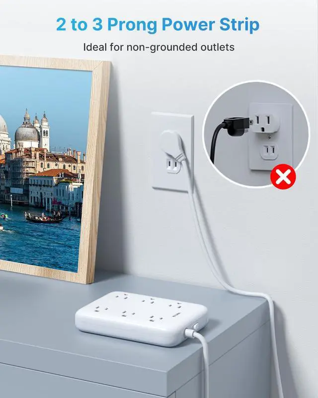2 to 3 Prong Outlet Adapter: This 2 prong extension cord can convert a polarized two prong outlet to a three prong outlet, ideal for the non-grounded outlets in older houses. Transform a 2-prong outlet into a safe, reliable charging station, perfect for personal electronics, small appliances, and more.