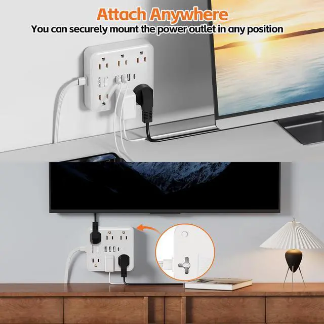 MULTIPLE SCENE USE: 2 3-way mounting holes on the back can be installed behind the TV/bed or under the table/cupboard, perfect for hiding the cable to keep it tidy; 4 non-slip pads on the back provide more security for table use.