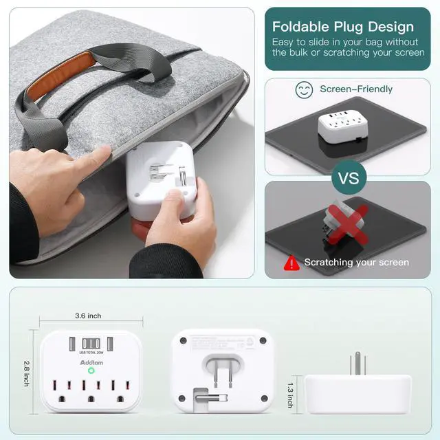 Foldable Plug for Travel Essentials - The small cruise ship approved power strip can be folded 90-degrees for prong protection and easier portability to save essential packing space in your suitcase or backpack.