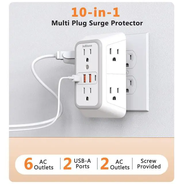 Wall Outlet Surge ProtectorWith 1050 Joules surge protection, this multiplug wall plug safeguards your TV, computer, laptop, or other appliances from power surges, creating peace of mind. Made of top-grade flame-retardant material, ensuring your electricity safety.