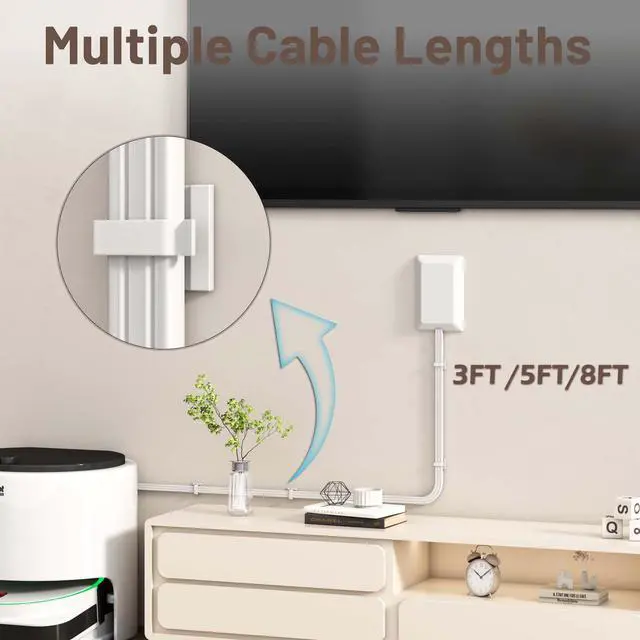 Different Size Extension Cords--Ultra-thin outlet cover concealer kit comes with 3ft/5ft/8ft flat power cord, providing 13A/125V/1625W standard 3 outlet power strips, which can satisfy your daily power needs and improve the happiness of your life.