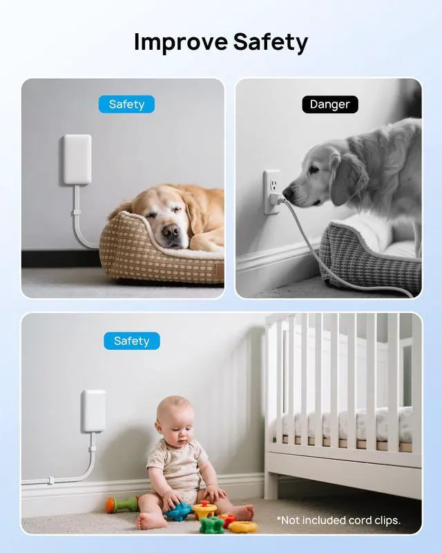 Child and Pet Safety Protection: This power strip flat plug outlet cover completely hides all plugs and cords, creating a safer space with no exposed wires. It prevents pets from chewing wires and keeps toddlers from touching outlets.