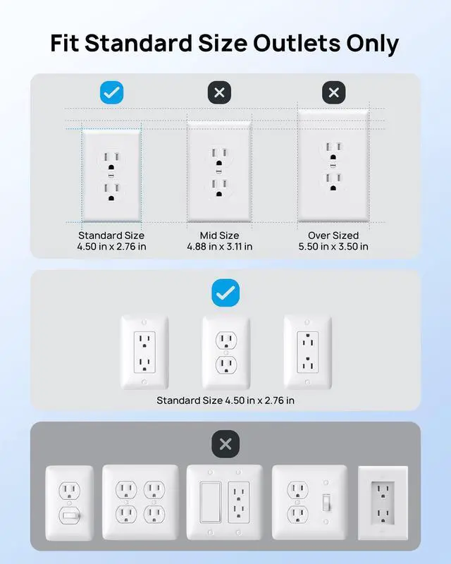 Flat Plug Power Strip with Outlet Cover: This flat extension cord with outlet cover hides wall plugs and wires completely. Its 0.73-inch thin design helps you push furniture, such as beds or sofas, tightly against walls. The cover measures 3.98 x 1.89 inches and is compatible with standard-sized wall plates, helping to solve the furniture wall placement problem.