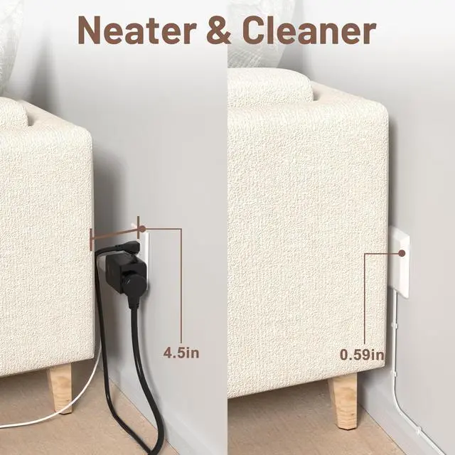 Ultra Thin Flat Plug Design: This power strip features a space-saving flat plug design, ideal for tight spaces behind furniture or in compact rooms. Perfect for home offices or dorm setups where space optimization is critical.