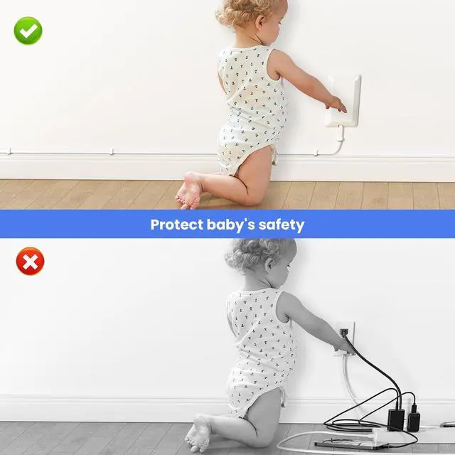 Ultra Thin Outlet: The flat plug design of this power strip features an ultra-slim head, making it suitable for bedside chargers and nightstand stations. It includes surge protection with short-circuit and over-current protection, ensuring your devices are safe from lightning strikes and power surges.