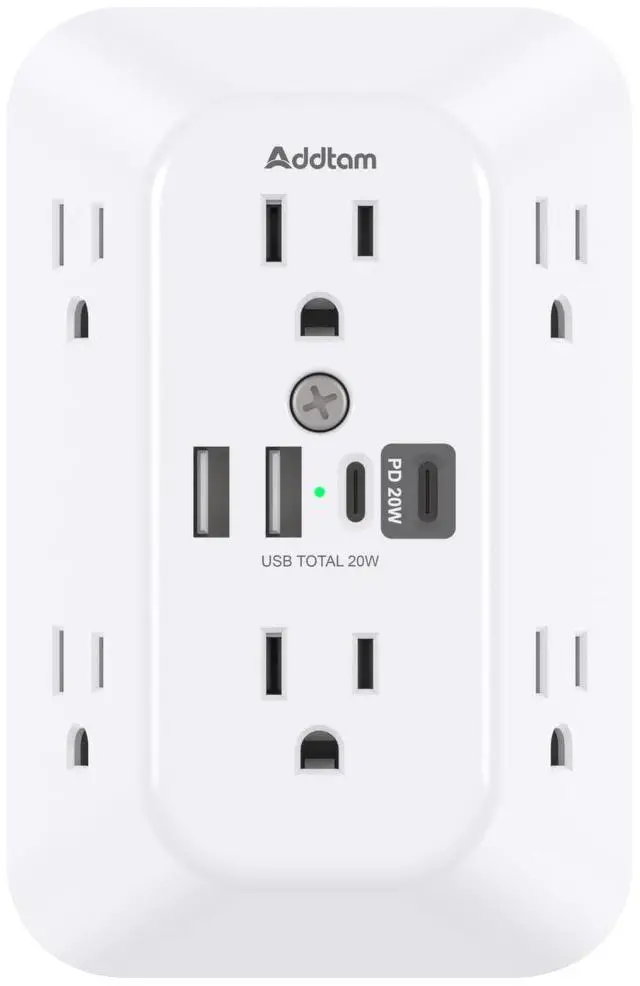 10 IN 1 USB Wall Outlet - You get 4 USB charging ports (2 USB C) and 6 wide-spaced outlets; the 3 side design plug extender provides ample space; removable screw and plastic prong ensure a secure fit to the outlets.