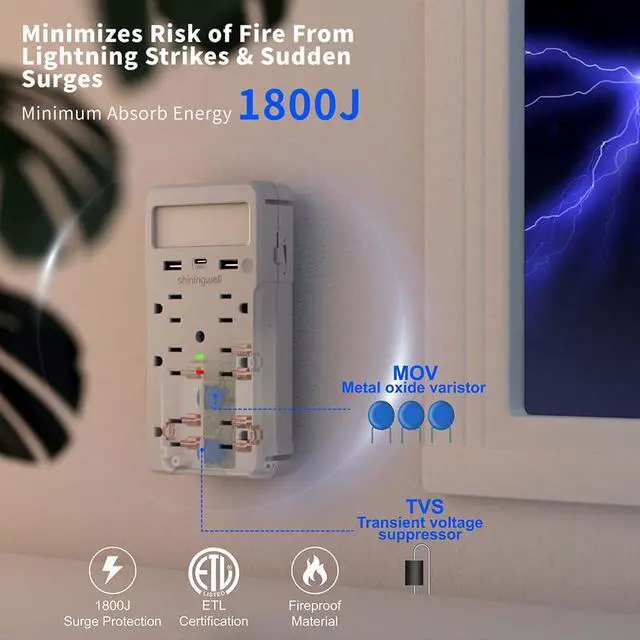 SURGE PROTECTION & ADVANCED SAFETY: With 1800-Joule surge protection, this outlet expander shields your electronics from damaging power spikes. Built-in safeguards prevent over-current, over-charging, and overheating.