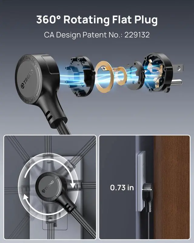 360° Rotating Flat Plug: Design with a revolutionary 360° rotating plug that adapts to any wall outlet, combined with a wall-mountable slim profile to eliminate cord clutter - ideal for tight spaces behind furniture or dorm rooms.