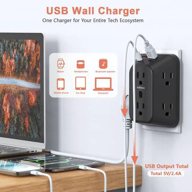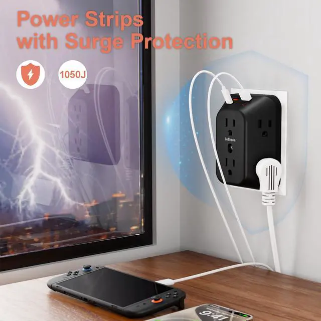 Safe surge protection socketThis multi plug wall socket has a surge protection function, which can protect your TV, computer, phone, or other appliances from the impact of surges. It is made of top-grade flame-retardant materials, ensuring your electrical safety and allowing you to use it with peace of mind.