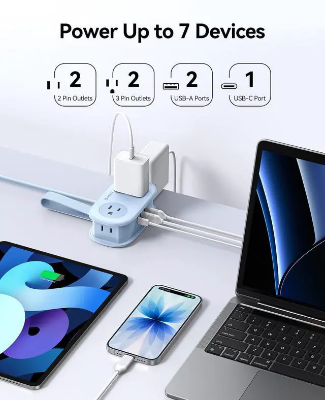 7 in 1 Travel Power Strip: This product provides 4 AC outlets and 3 USB ports, one of which is a USB-C port, allowing users to charge up to 7 devices or connect power to multiple devices simultaneously, making it convenient and practical.