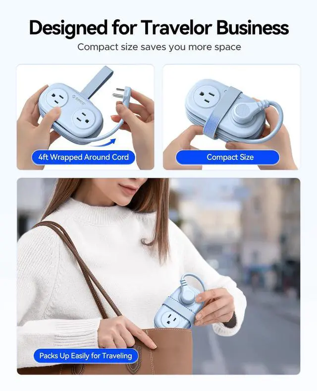 Compact Size & Wrap-Around: The portable power strip has a compact size of 5.24 x 3.11 x 2.28 inches with a flexible 4ft retractable wrap-around extension cord. It's easy to pack in your luggage without the hassle of managing the wires, ensuring you have easy access to power in various settings.