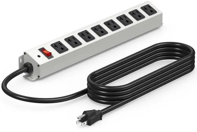 With a wall mount design, this power strip can be securely attached to a wall or desktop using screws. It includes a 3FT 12 AWG extension cord and is rated for 125V/20A/2500W, featuring a 1200J surge protector.