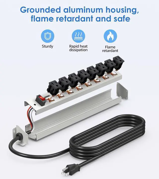 Ideal for use in shops, kitchens, garages, or workbenches, this power strip is flame retardant and dissipates heat quickly, providing protection against short circuits and overloads.