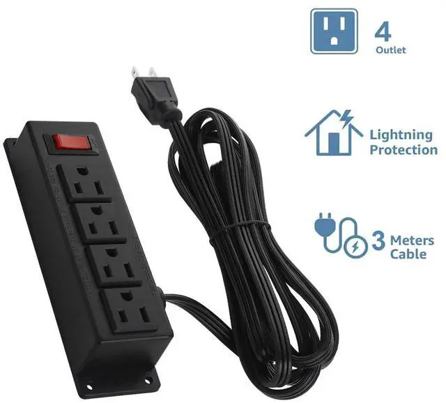 Mountable Power Strips with Switch: Has 4 standard AC outlets and a switch connected with a 6 ft cord, includes 4 screws. Cost-effective, providing you with a convenient electricity environment.