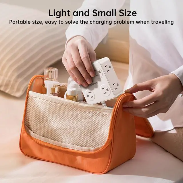 Compact & Portable Travel Power Strip: Weighing only 14 oz with mini dimensions (5.43 x 4.21 x 3.39 inches), this portable power strip is travel-friendly. Its small, lightweight build fits easily into luggage or a backpack, making it perfect for business trips, dorm life, or as a compact desktop charger. Take it anywhere for instant power access.