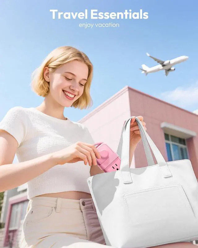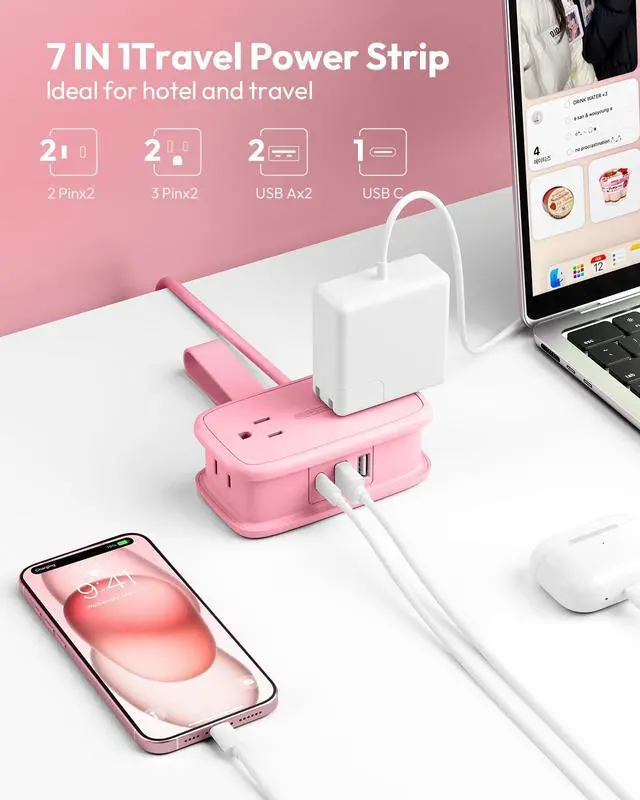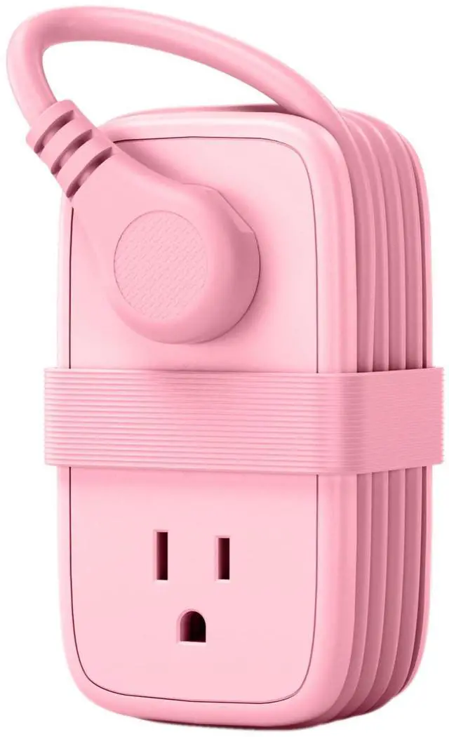Easy to Carry & Wrap-Around Extension CordThis pink travel power strip features a small size (5.28 x 2.99 x 2.64 inches) with a flexible 4ft retractable wrap-around extension cord, designed to be easily packed into handbags, backpacks, and luggage without the hassle of managing the wires. Its ideal for travel and vacations.