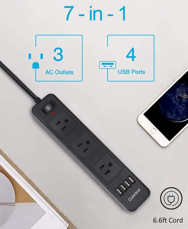2 pin to 3 pin adapter: This 2 prong power strip with a 6.6ft heavy-duty 2 prong extension cord can be used with most household, office, travel, and hotel electrical appliances. The 4 USB ports are compatible with all USB charging devices such as mobile phones, tablets, laptops, cameras, e-readers, and more. The ON and OFF power switch allows for easy control.