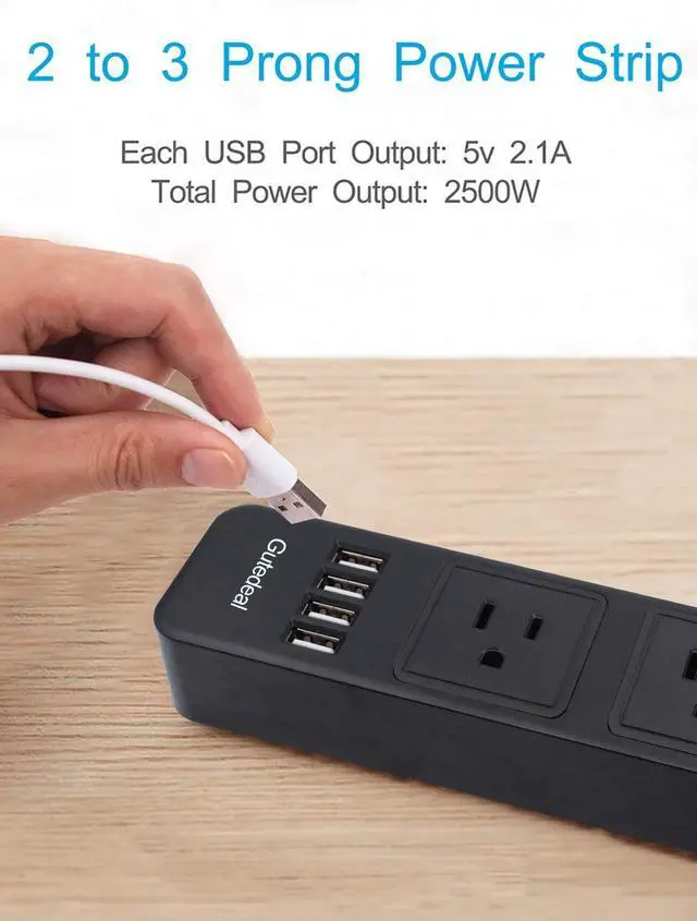 2 Prong to 3 Prong Power Strip: Built-in 4 fast charge USB ports, each USB port can output 5V 2.1A, supporting the charging of 4 phones or 2 tablets at the same time. Charge all your devices quickly and efficiently.