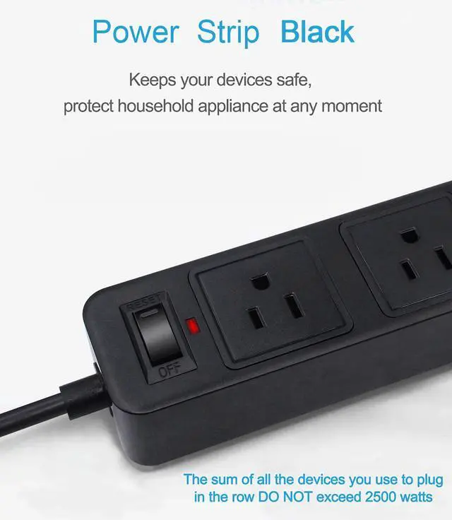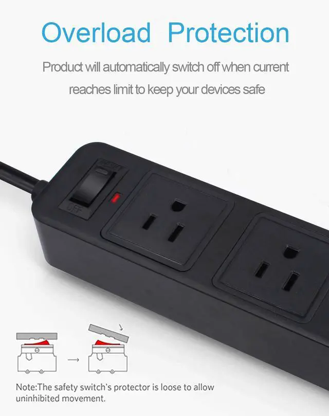 2 Prong Power Strip: Portable power strip with overload protection and over-heated protection. Protect household appliances at any moment. The product will automatically switch off when the current reaches its limit, designed for older homes and ideal for non-grounded outlets.