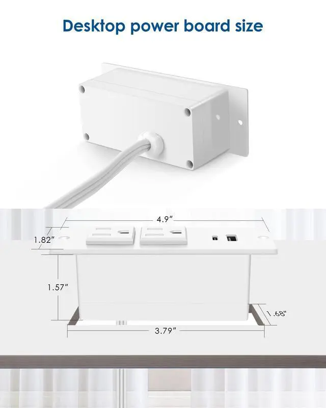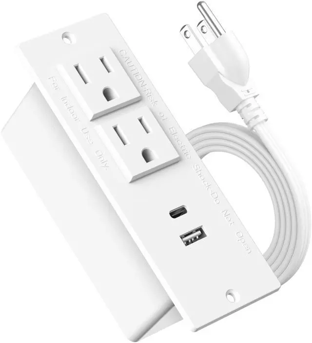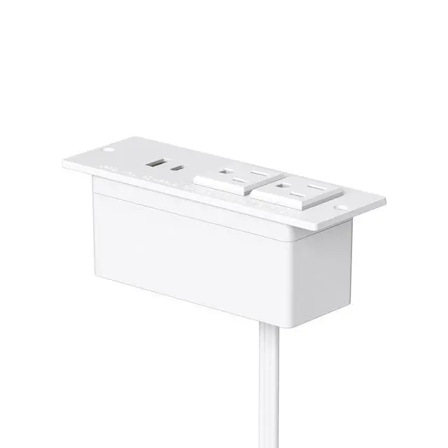 Creative Recessed Desktop Design Space Saving: This unique recessed plug-in outlet eliminates bulky adapters and messy plugs. 2 AC Outlets & 2 USB: Ergonomic and compact design allows you to charge multiple devices simultaneously, offering more space-saving and well-organized options.