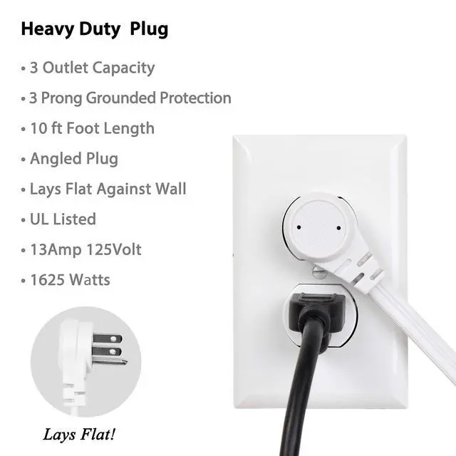 FLAT, ANGLED EXTENSION CORD FOR EASY USE: This flat head plug extension cord is easy to connect.