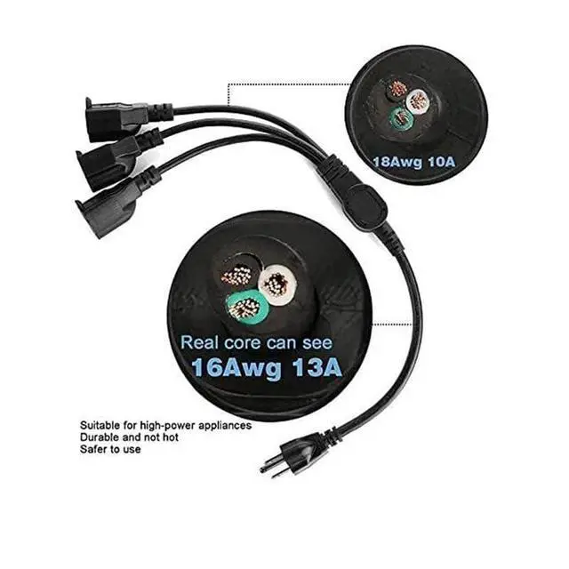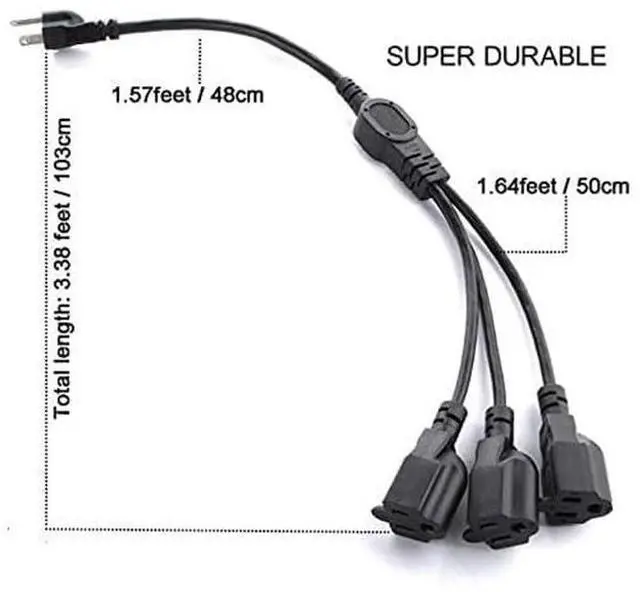 • Connector: NEMA 5-15P to 3 NEMA 5-15R, Length: 3.3ft, 16 AWG