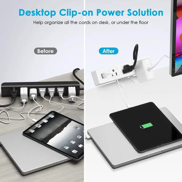 Great addition to desk edge workspaces, featuring 3 outlets and 4 USB charging ports. Say goodbye to bending over to the floor searching for a spare outlet and enjoy a more organized desk.