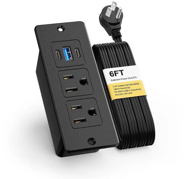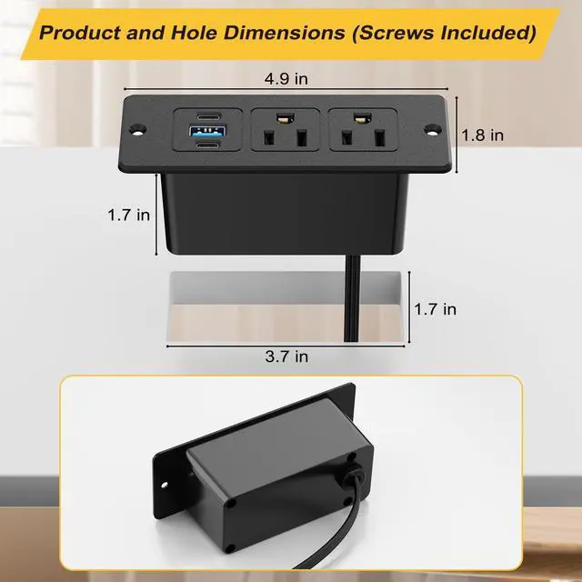Easy Recessed InstallationThis compact recessed power strip features a dedicated screw fixation design for seamless, secure flush mounting (2 screws included). Effortlessly install it into desks, counters, or furniture for a neat, organized desktop. The low-profile, flat-cord design ensures stable placement without slipping, and a lighter build than standard power strips for added convenience.