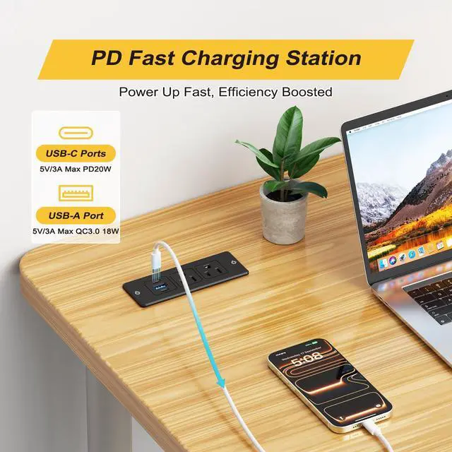 Desktop Power Strip with USB PortsAdded extra 2 USB C ports for your devices, the USB C port can charge up to 5V/3A. USB-A ports can charge up to 5V/2.4A Max. AC outlets feature a power rating of 125V/12A/1500W, compatible with your cellphone, laptop, tablet, earphone or cameras without a variety of converters.